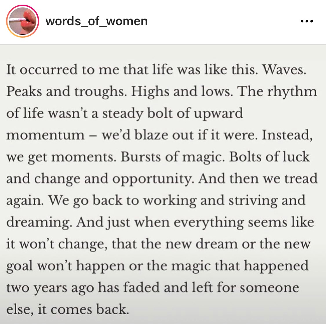 I've been thinking about analysis paralysis, self-doubt, and the dreams I haven't moved towards. One of my fears is that I won’t live up to the potential I see for myself on the really, really good days. You know, the days when you’re in total flow and you see the visions so clearly. Other days, the not so really really-good days, the roads and the visions seem foggy.